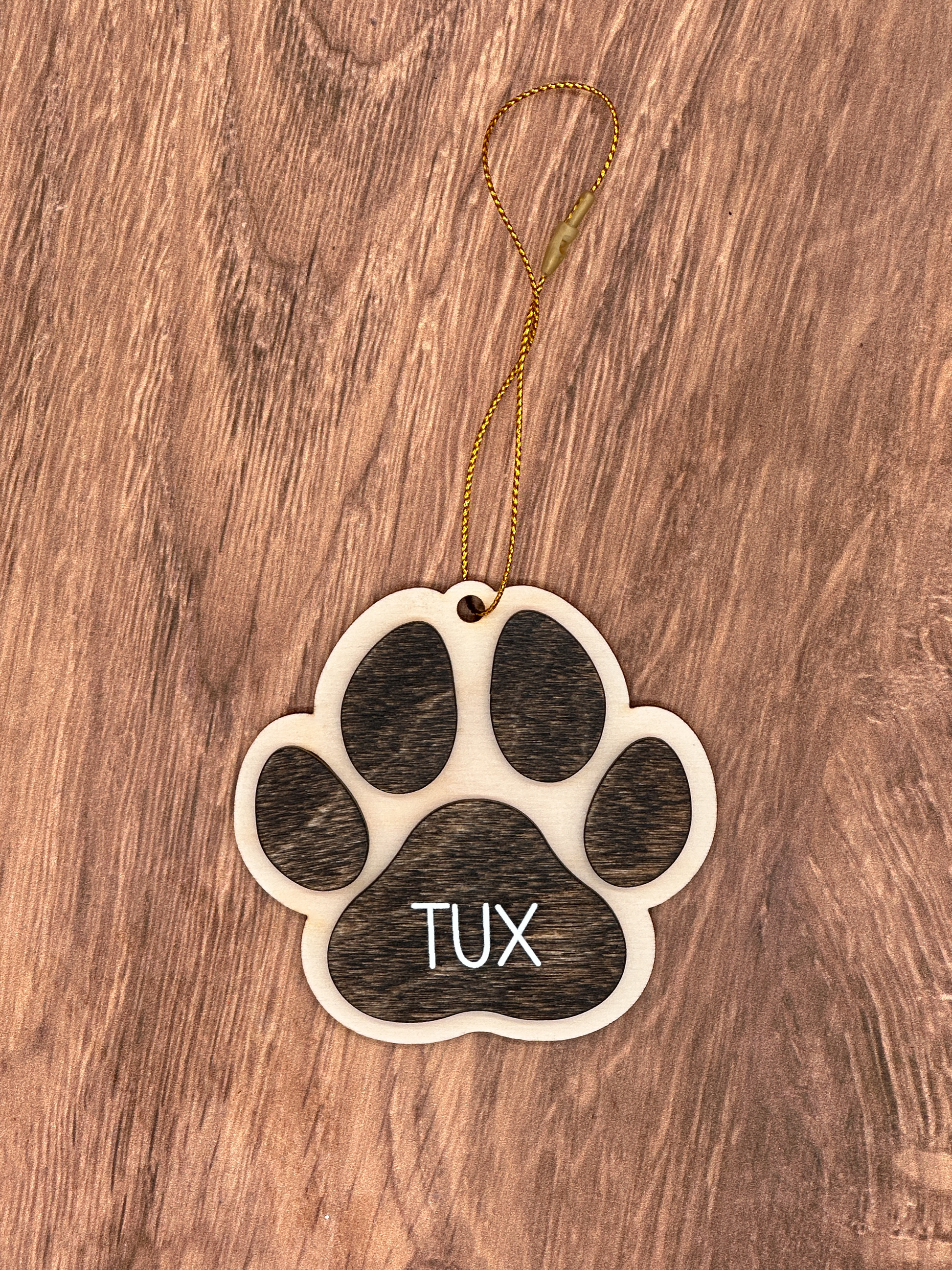 Personalized Wooden Paw Print Ornament